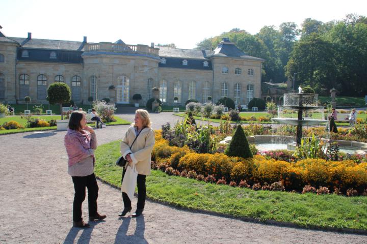 Der liebe Petrus meinte es sehr gut mit unserer fünf-köpfigen Delegation bestehend aus Birgit Scheible, Frank Lueken, Konstanze Wandersleb, Clemens Kech und Rita Koch (v.l.n.r.) beim 2. Veranstaltungstag des 67. Deutschen Genealogentages. Kaiserwetter am Nationalfeiertag erwärmte die Gemüter und brachte die Kongressteilnehmer vor allem in der barocken Parkanlage der Orangerie zum fachlichen Wissens- und Erfahrungsaustausch zusammen. Dank vielfältigen und spannenden Themen waren aber auch die Vortragsräume in Kulturhaus, Stadtbibliothek und dem Orangerie-Gebäude gut besucht. Bei anregenden Gesprächen fand der Tag mit volkstümlichem Rahmenprogramm einen zünftigen Abschluss.